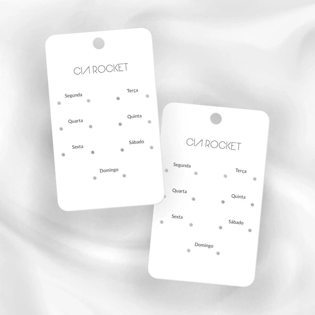 As tags são produzidas em papel couchê 300g, com verniz brilho e impressão colorida.