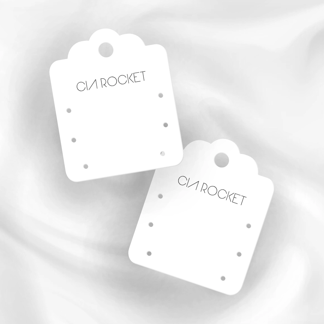 As tags são produzidas em papel couchê 300g, com verniz brilho e impressão colorida.